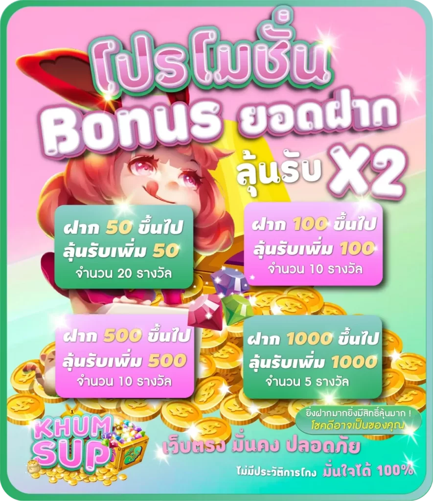 โปรโมชันขุมทรัพย์888 สุดคุ้มโบนัสแตกง่ายทุกเกมการันตีถอนไม่มีขั้นต่ำ